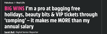 Just like those ‘compers’ in the news who win constant holidays, cash payouts and luxuries.